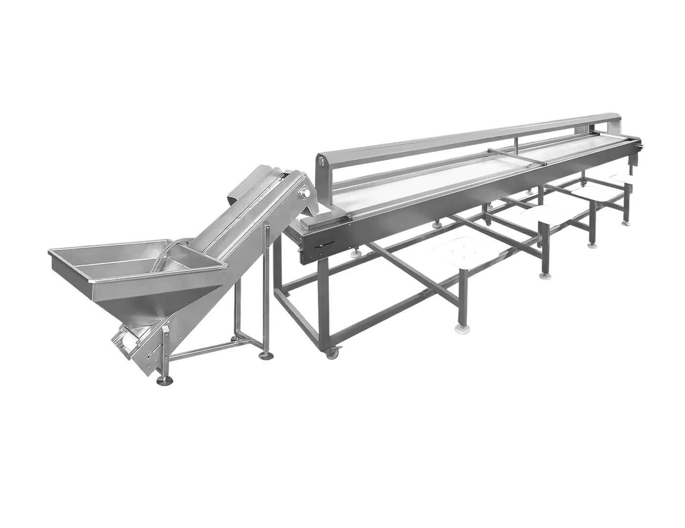 Entre nuestros modelos de sistemas de procesamiento y transporte de frutos secos, SB2/3/6 son bandas de selección manual diseñadas según el número de operarios, donde se realizan las inspecciones finales de los productos. Son altamente eficaces para corregir errores que puedan surgir después del procesamiento.