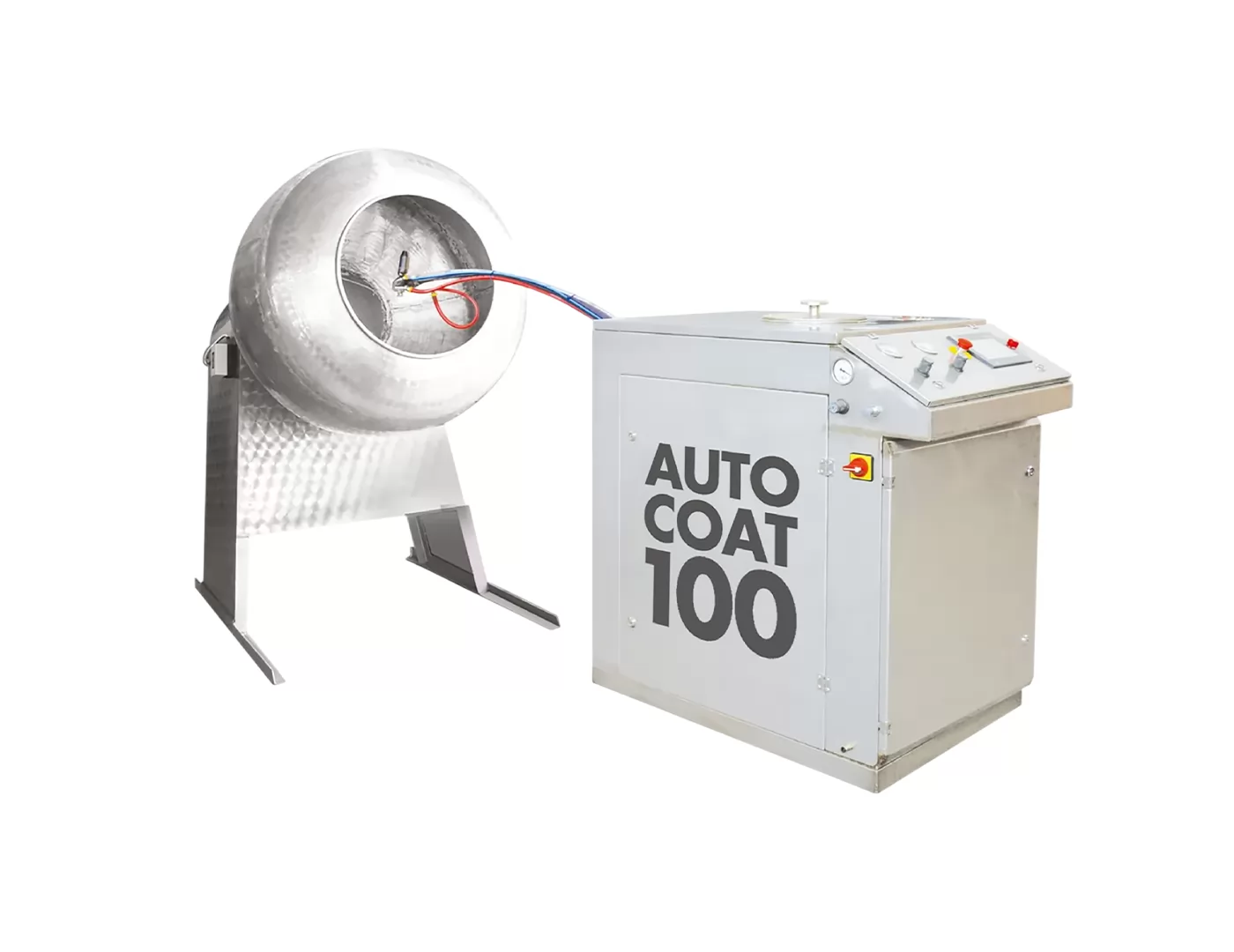 Entre nuestros modelos de sistemas de procesamiento y transporte de frutos secos, AUTOCOAT100, es un sistema avanzado capaz de aplicar recubrimiento sobre los frutos secos mediante un sistema de pulverización automática. Garantiza una distribución uniforme del líquido sobre el producto y reduce la necesidad de mano de obra manual en las empresas.