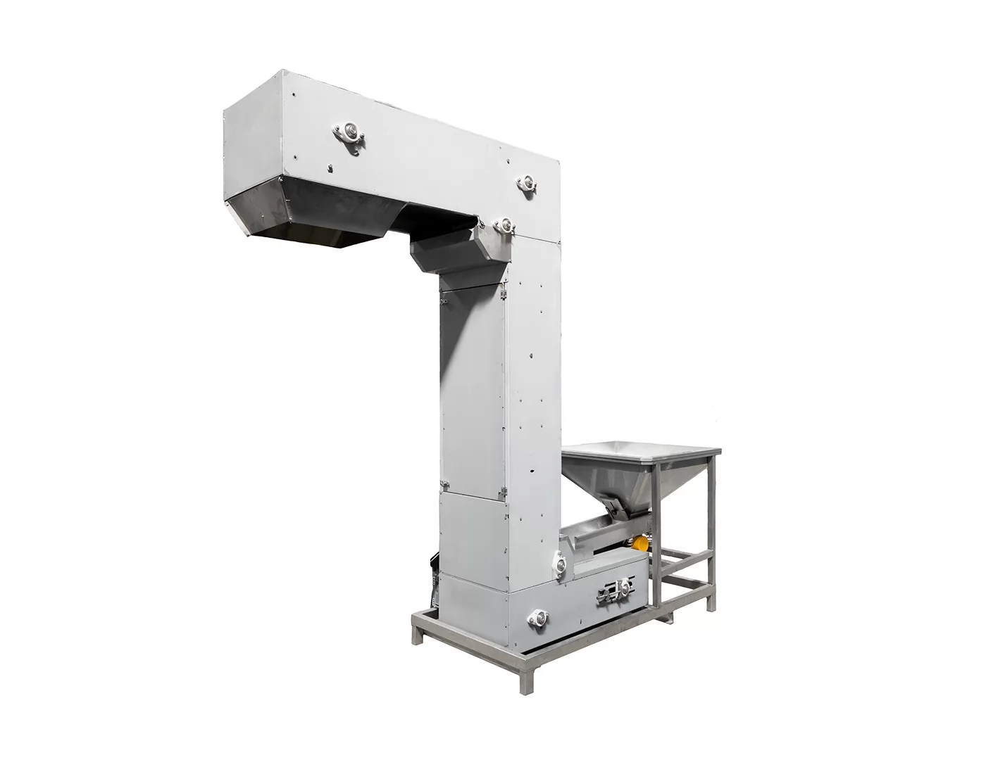 Entre nuestros modelos de sistemas de procesamiento y transporte de frutos secos, ELV-S40 es un sistema de elevador de cangilones compacto y eficiente, utilizado para el transporte vertical de productos. Es especialmente preferido en líneas de producción con grandes diferencias de altura.