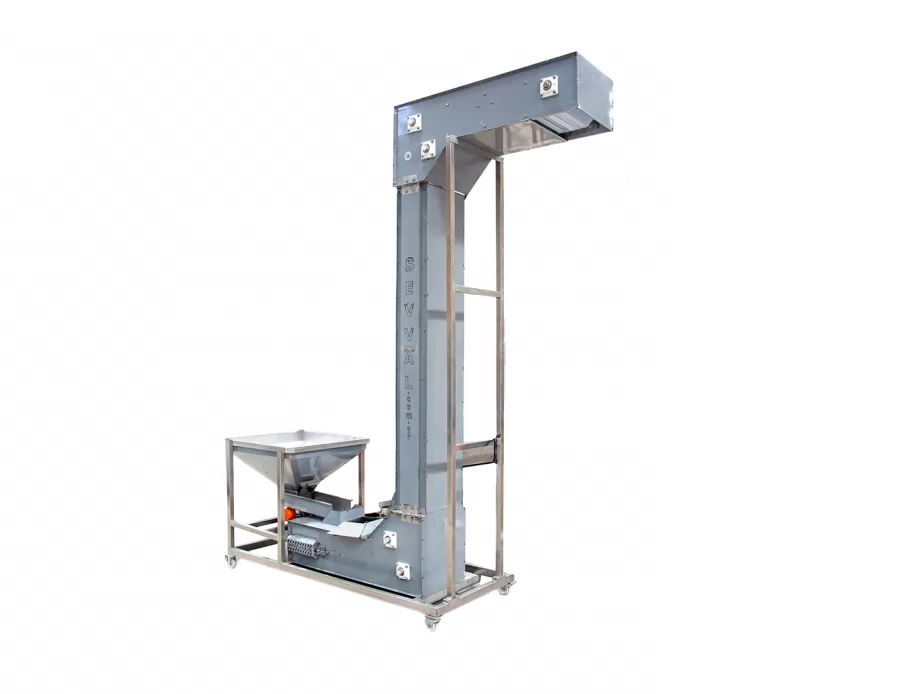 Entre nuestros modelos de Sistemas de Procesamiento de Frutos Secos y Transporte de Productos, ELV-P35-50 es un sistema elevador de cangilones compacto y eficiente diseñado para el transporte vertical de productos. Es especialmente preferido en líneas de producción con grandes diferencias de altura.