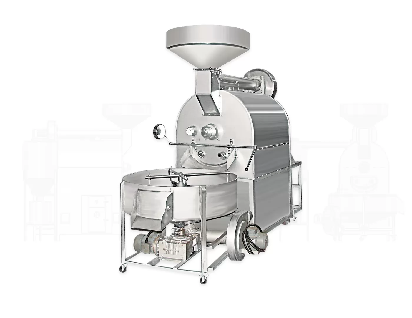 Su estructura higiénica y duradera de acero inoxidable proporciona una infraestructura ideal para el uso a largo plazo en la producción de alimentos. HB150 es una opción profesional para procesos de tostado confiables, eficientes y de alto rendimiento en instalaciones con grandes capacidades de producción.